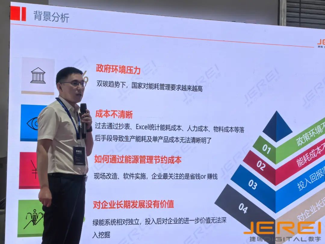 在本屆展會上,捷瑞數(shù)字為客戶呈現(xiàn)了數(shù)字孿生工廠、智慧能源管理、數(shù)據(jù)治理、AI智能知識庫等眾多應(yīng)用場景及案例,這些優(yōu)秀的解決方案一經(jīng)亮相,便吸睛無數(shù),眾多現(xiàn)場觀眾在展臺前駐足參觀,并就具體應(yīng)用和后續(xù)合作展開積極交流。此次捷瑞數(shù)字還進(jìn)行了《捷瑞數(shù)字智慧能源管理一體化解決方案》主題演講,成為本屆北京國際工業(yè)自動化展的一大亮點(diǎn)。