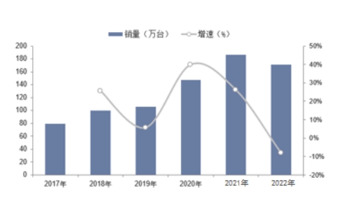 圖 2017-2022年中國主要工程機械產(chǎn)品銷量及增速