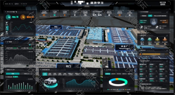 捷瑞數字依托自主技術基石——伏鋰碼云平臺(尤其是強大3D引擎J3D、智能數據挖掘工具RBI),建設虛實映射可交互的統一沙盤界面。此平臺不僅能將復雜的園區系統和產線過程三維復現,更以實時的生產運作和能耗信息進行數據驅動渲染,支持管理者在虛擬世界掌控真實工廠關鍵脈動。用3D數字沙盤構筑孿生場景融合體