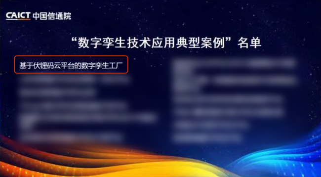 “基于伏鋰碼云平臺的數(shù)字孿生工廠”成功入選2023數(shù)字孿生技術(shù)應(yīng)用典型案例(數(shù)字孿生城市典型案例)