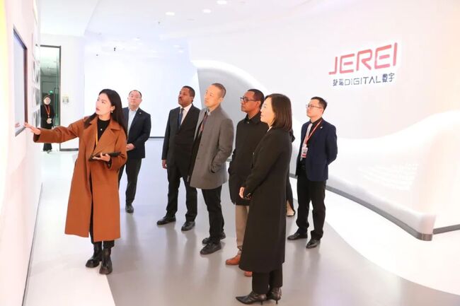 在參觀過程中,塔費拉·德貝·伊馬姆大使對捷瑞數字在數字孿生等領域的產品和行業應用表示出了濃厚的興趣,詳細了解了捷瑞數字在海外業務的發展狀況和未來規劃,并表達了對捷瑞數字將數字化產品推向更大海外市場的期待。他期許捷瑞數字繼續加大研發投入,拓展包括埃塞俄比亞在內的國際市場,通過技術合作與交流,共同推動區域經濟的發展。