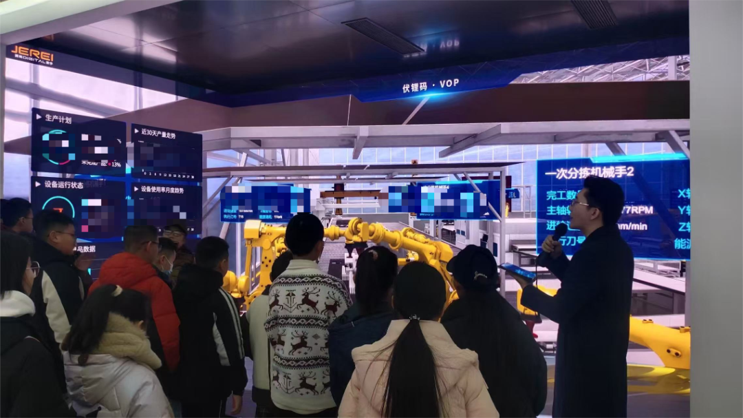 作為山東省省級(jí)虛擬現(xiàn)實(shí)公共應(yīng)用體驗(yàn)中心,捷瑞數(shù)字“工業(yè)產(chǎn)品與場(chǎng)景虛擬現(xiàn)實(shí)體驗(yàn)中心”,以一個(gè)個(gè)鮮活生動(dòng)的實(shí)際應(yīng)用案例,集中展示了數(shù)字技術(shù)在制造業(yè)、油田能源以及城市建設(shè)等眾多領(lǐng)域的典型場(chǎng)景與解決方案,“AI技術(shù)”、“數(shù)字孿生”、“虛擬空間”等生澀的專業(yè)術(shù)語,在這里實(shí)現(xiàn)了具象化的生動(dòng)表達(dá),結(jié)合專業(yè)細(xì)致地講解,給學(xué)子們上了一堂科技與知識(shí)交融的趣味課,讓大家近距離觸摸數(shù)字技術(shù),感受科技魅力!